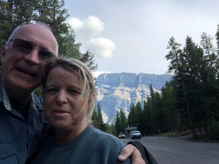 Traveled 395 miles today from our camp in Swift Current Saskatchewan to Tunnel Mountain Village I Campground. A view a few steps from our campsite.