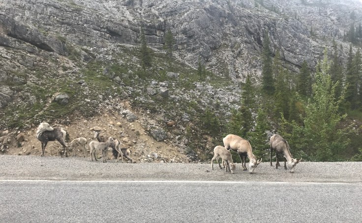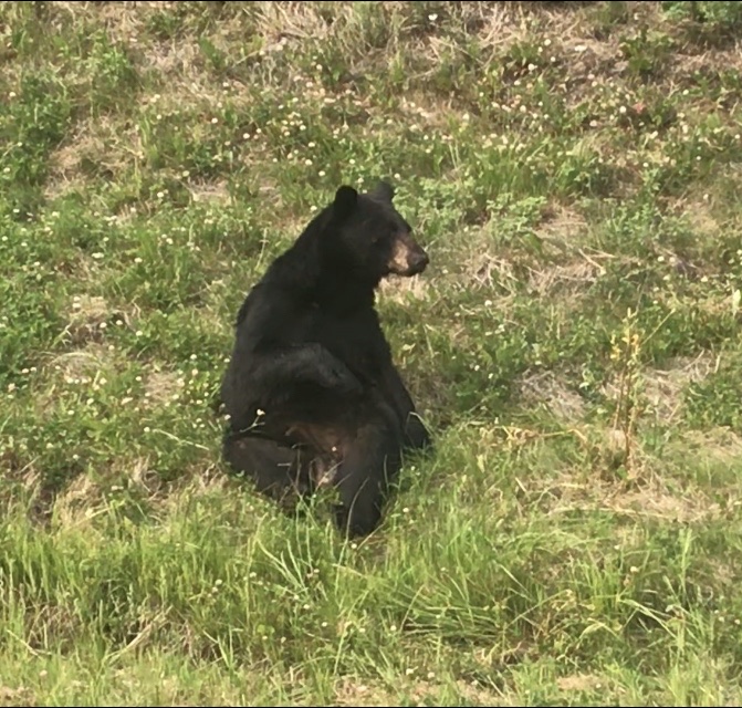 Back out on the Alaska Highway. The scenery is pretty much the same as yesterday, but I got Tom to stop when we saw wildlife. We hit the jackpot: a Sitka blacktail deer, many bears and many more buffalo, and mountain goats