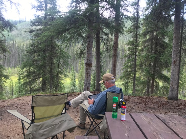 This is our campsite at Walter Fork, bug spray and bear spray at the ready: