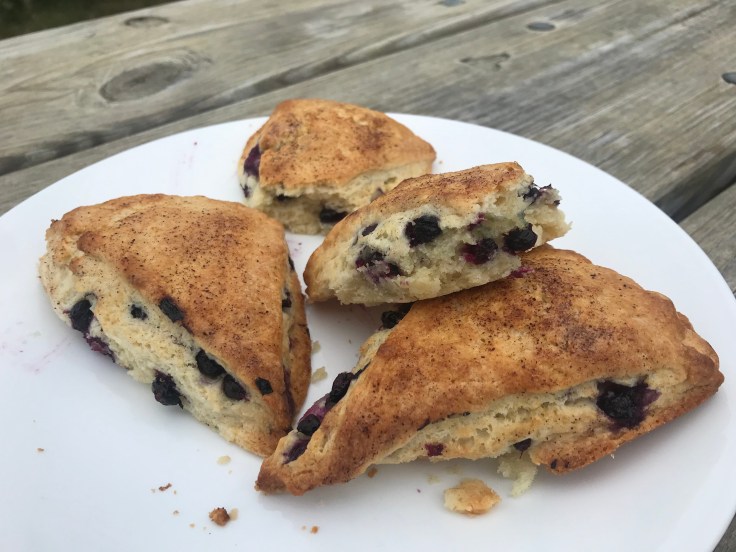 Rainy. I made BLUEBERRY SCONES from the wild blueberries we picked Thursday. I had to try a couple tricks and they came out dee-licious.