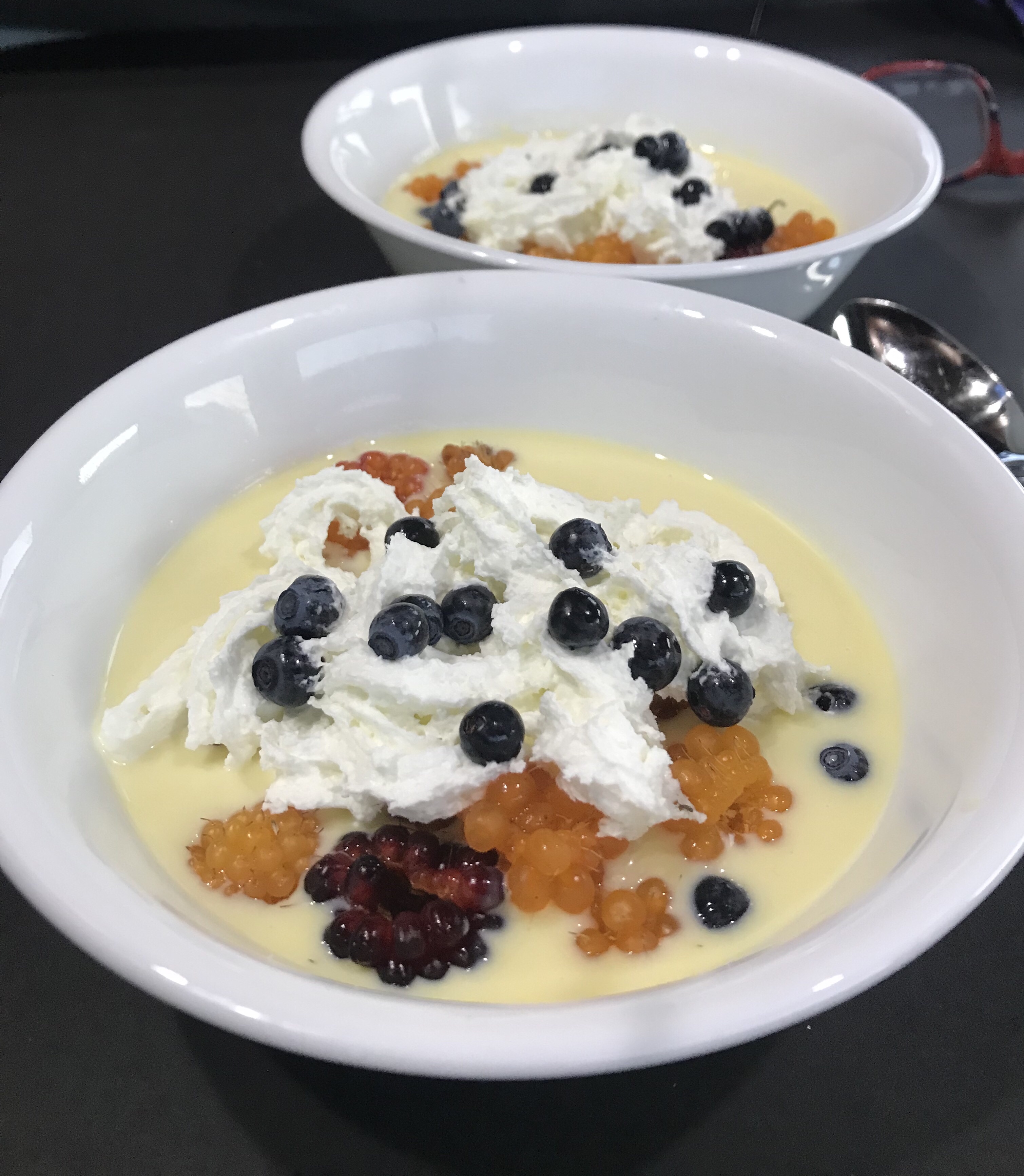 Last thing was making custard for all the fresh salmonberries and blueberries we picked!