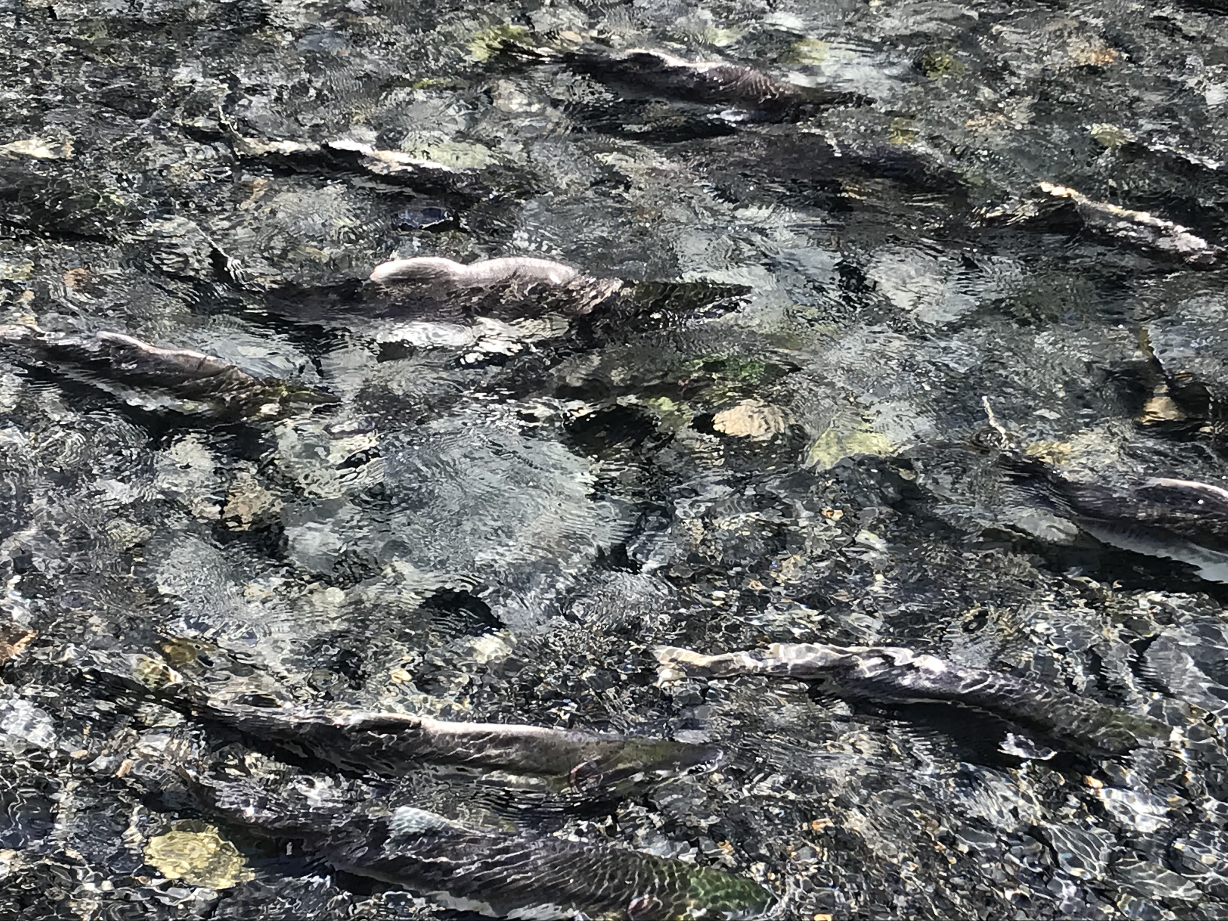 We had lunch in Whittier then we went to a little park at a stream. Pink salmon were spawning in the stream and it fascinated me.