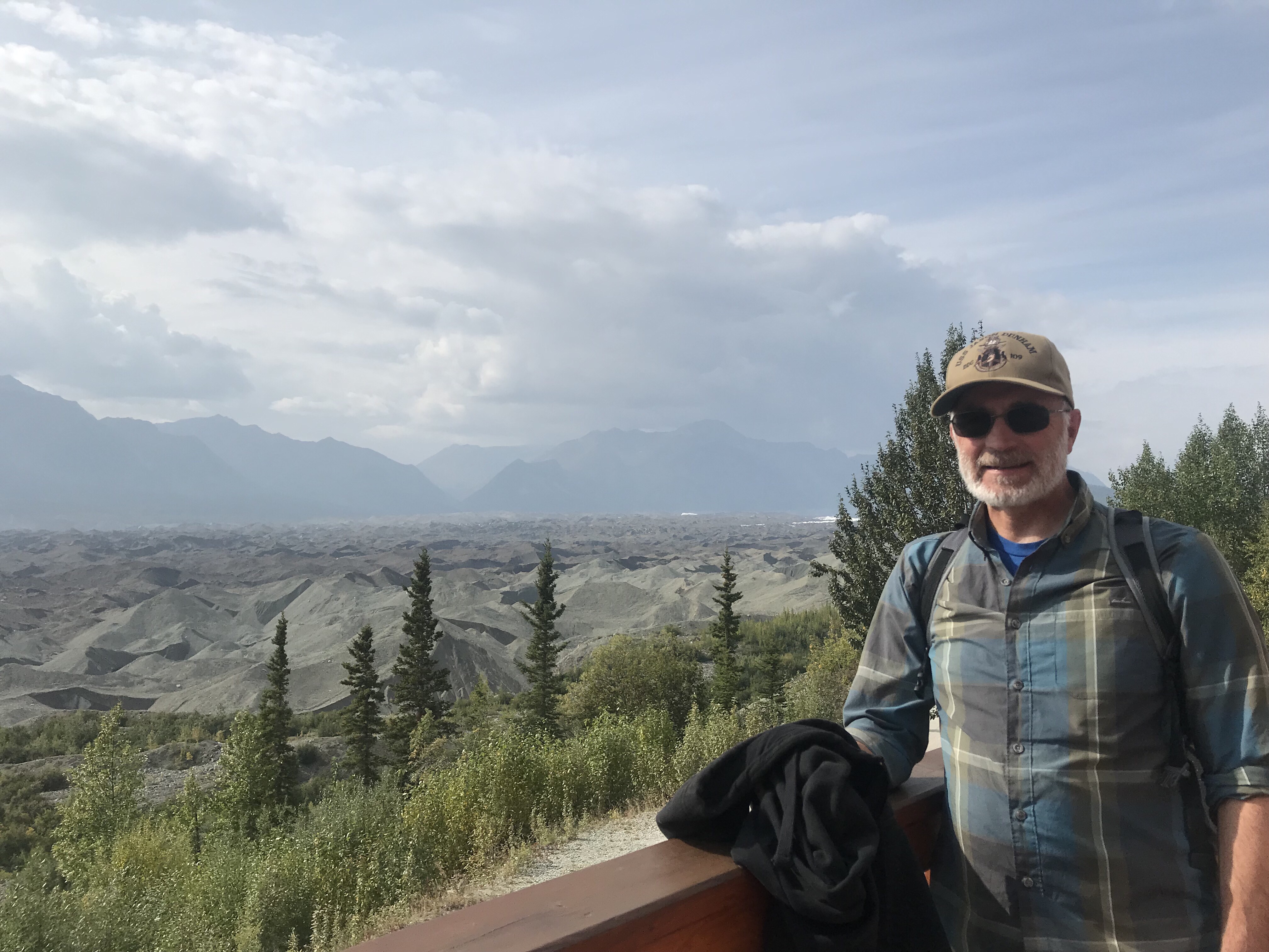 Probably cooler than the old mill was the glacier. We saw a big wide area of rock that resembles the pictures of the moon or Mars. We thought it was wasteland from copper mining. I asked our guide how far that waste went and he said three miles at the widest, but it’s not from mining, it is a glacier. We have not seen a glacier like this that is so rock covered. Looking more closely, we could see the bluish glacier ice here and there under the rock.