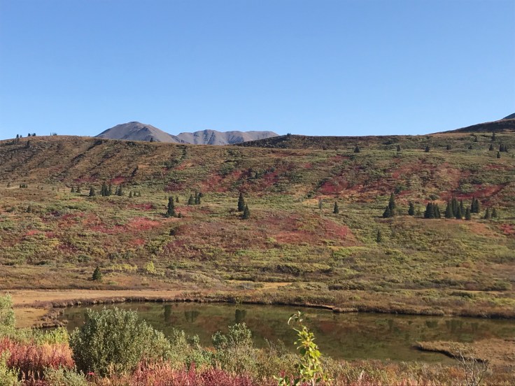 We left the Alaska Highway yesterday at Haines Junction, Yukon, and proceeded down the Haines Highway. Moving into British Columbia, we are still driving some of the most beautiful scenery in the world. Early fall colors abound in the shrubbery of the tundra. The fireweed I mentioned before has turned bright red, and some fireweed still holds the pink cottony tops.