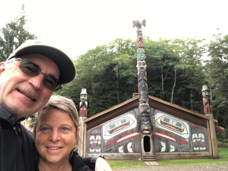 We drove north of Ketchikan and found a totem park, Totem Bight, and walked through it.