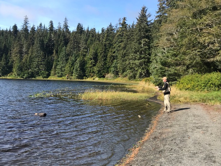 We found a fishing spot so Tom could get one final shot at fishing in Alaska: Ward Lake. No luck.