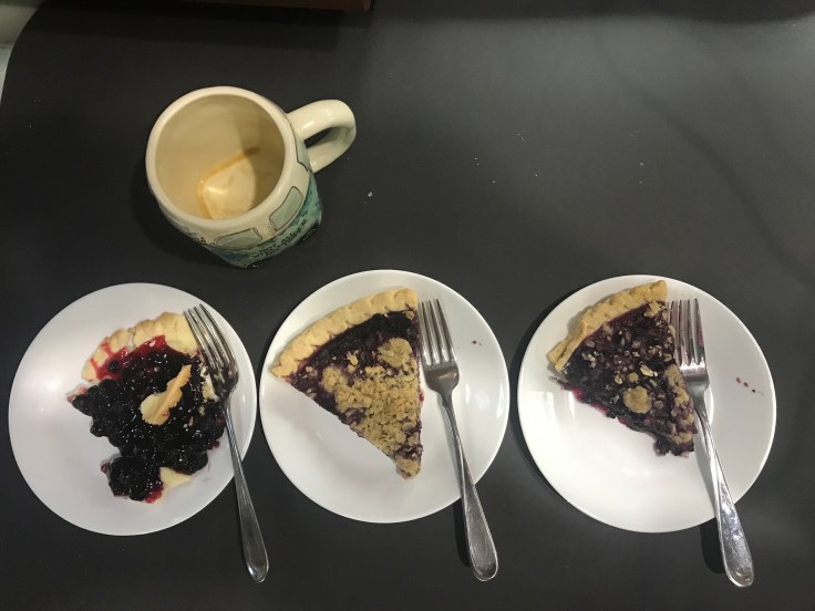 The decision? Tom votes for Whistle Stop, the messy pie on the left. I’ll take any.