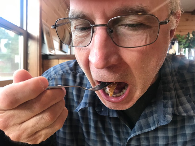 I did a reconnoiter of lunch menus at both places and reported back to Tom. He said, “Are we going to try both?”
