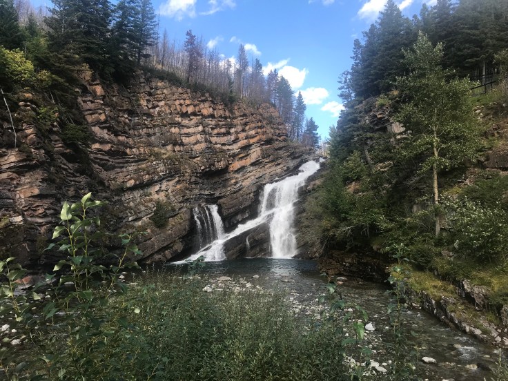 Waterton has a nice town in the park. This ‘designer’ waterfall was right next to the campground, also in town.