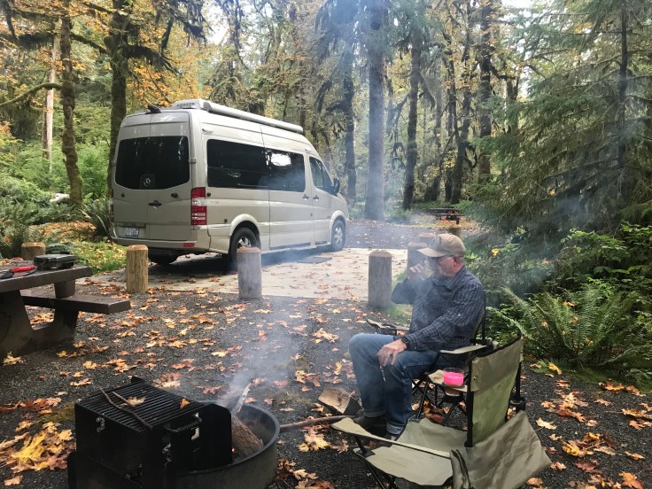 Then we camped at Hoh Campground in the rain forest. We scrounged the campground for firewood and had a campfire!