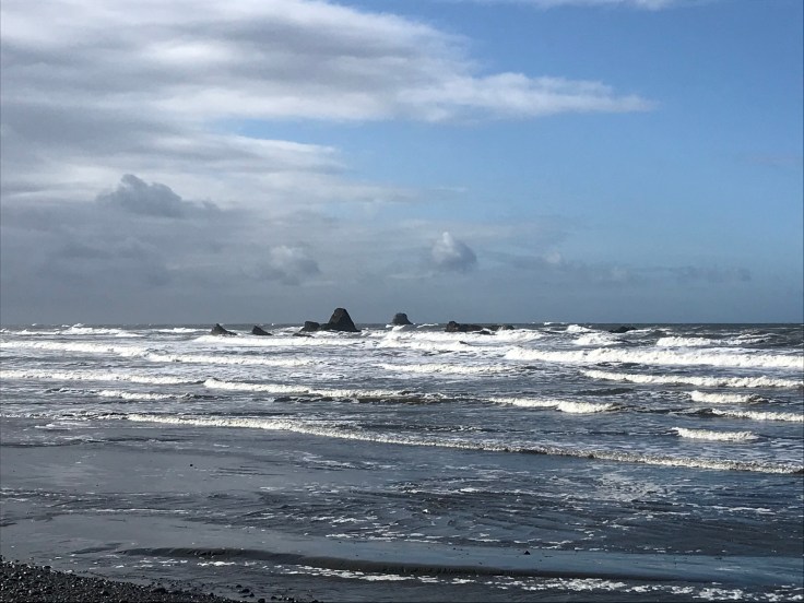 Finishing up Olympic National Park. We drove to the ocean at Ruby Beach and walked through the driftlogs to the rocky shore. We had a clear sky.