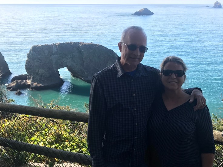We went to Port Orford State Park and walked to the high cliff view. Again we saw the fishing boats but we also saw seals far below and WHALES spouting way in the distance, so far you needed binoculars to see them. It was our first sighting in the lower 48. The wind wasn’t blowing – yesterday the wind was so fierce we didn’t stay at some of the viewpoints very long. I haven’t known the Oregon Coast to be so calm as it was today.