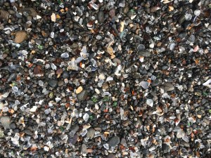 4) Glass Beach. From garbage thrown away years ago. I kept the bird head and the green piece. Many people were looking for glass there.