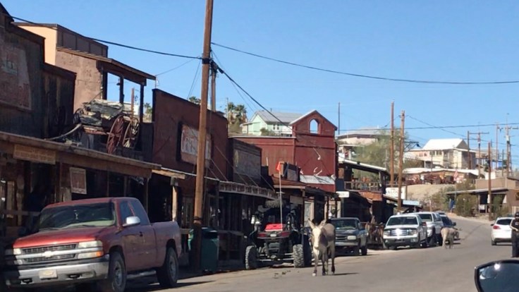 OK, I am not making this up. The tiny town of Oatman, Arizona was once a mining town where donkeys were used in the mining effort. When the mining ended the donkeys were freed. There are now 25,000 wild donkeys in the area, and 26 which are not wild that rule the town of Oatman. Oatman looks like it is 100 years ago, kind of like Dawson city, Yukon, but rougher.