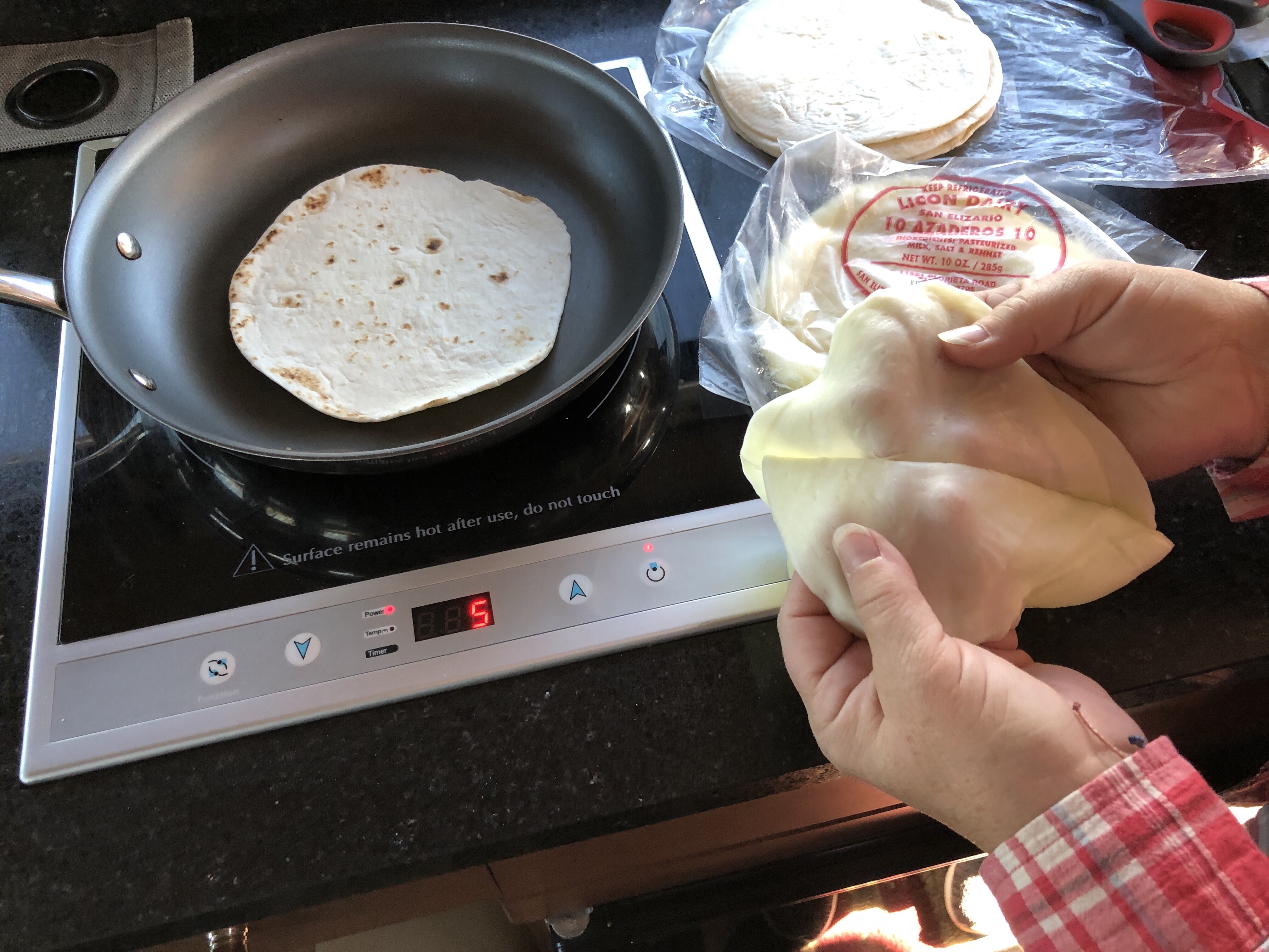 Asadero Cheese Quesadilla. Quick, one pan, easy cleanup snack. Topping with salsa and sour cream is a killer.
