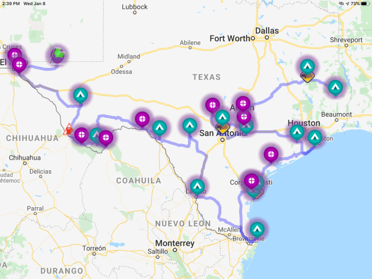 Our Texas Route Map Heading outside Texas any day now. Texas is a great place to visit. I am going to miss it. Share this: Email a link to a friend (Opens in new window) Email TweetLike Loading... One thought on “Our Texas Route Map” Add yours WOW! you guys have made it around town!!!! very cool!! LikeLike Reply Leave a comment Cancel reply Δ This site uses Akismet to reduce spam. Learn how your comment data is processed.