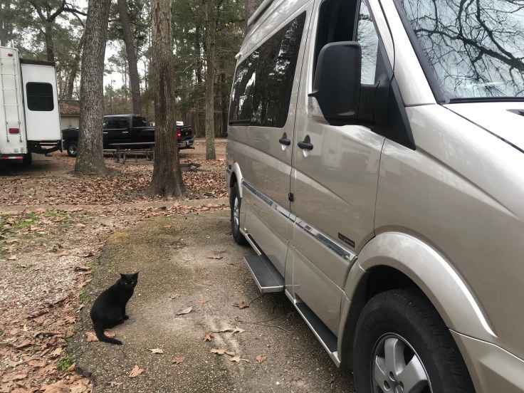 Here at Louisiana’s Sam Houston Jones State Park, we had an unofficial Camp Host. Really tempted to put him in Arvi and take him along!