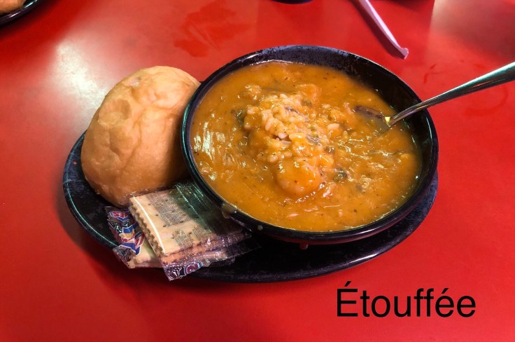 First stop: Steamboat Bill’s in Lake Charles, referred by two parties from two different places. I had the shrimp and crab gumbo and Tom had shrimp étouffée. Both came with a Louisiana roll. This roll is tender and lightly crispy and melts down to nothing in your mouth. Wow!