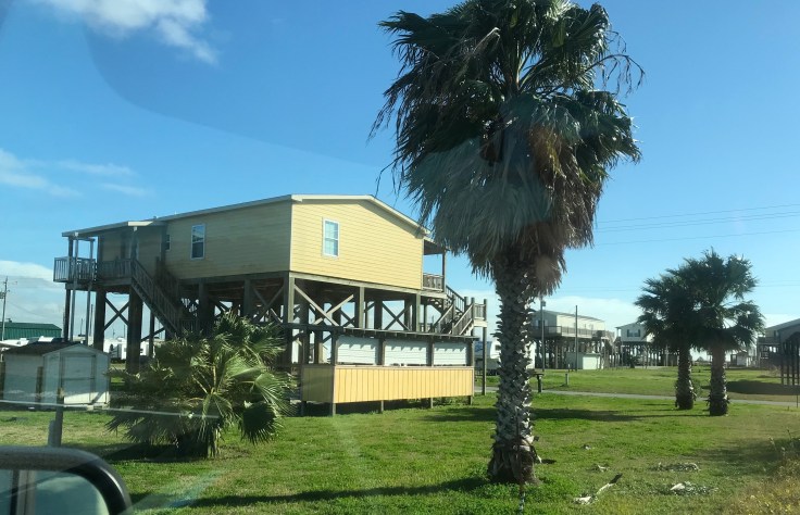 South of here there is raw coast. No levees, just marshes with birds and alligators. The homes near the gulf are built higher after each hurricane.