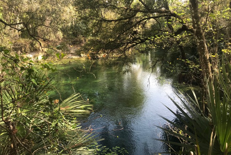 Blue Springs State Park is a delightful secret. Glen casually mentioned this park to us yesterday and we thought we should check it out. Admittably the weather was pleasant, but this park is loaded with manatees, fish and waterfowl in the clearest water you’ve ever seen. We saw manatees swim to kayaks!