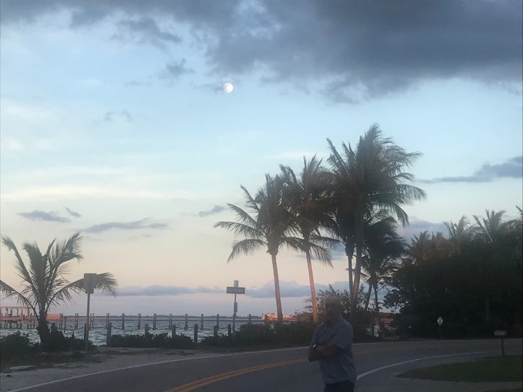 It became sunnier later in the day. For evening sky viewing, the full moon was fierce competition for the sunset, which we are unable to view from the pier any more. The pier has been closed to everyone except a few paying fishermen.