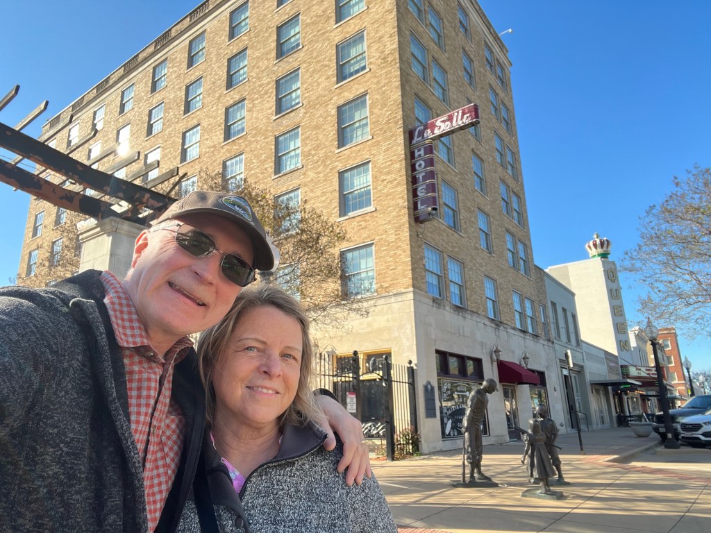 Left home and drove through heavy snowfall. Make it to Arcola Illinois. Still a cold 31 degrees here and forecast 18 degrees tonight. We didn’t expect that. Woke up to 14 degrees and a little snow on the ground. Buds on trees came out in Salem Illinois. Today is Bryant Arkansas and a little warmer. Leaving Bryant we ended up in Bryan Texas.